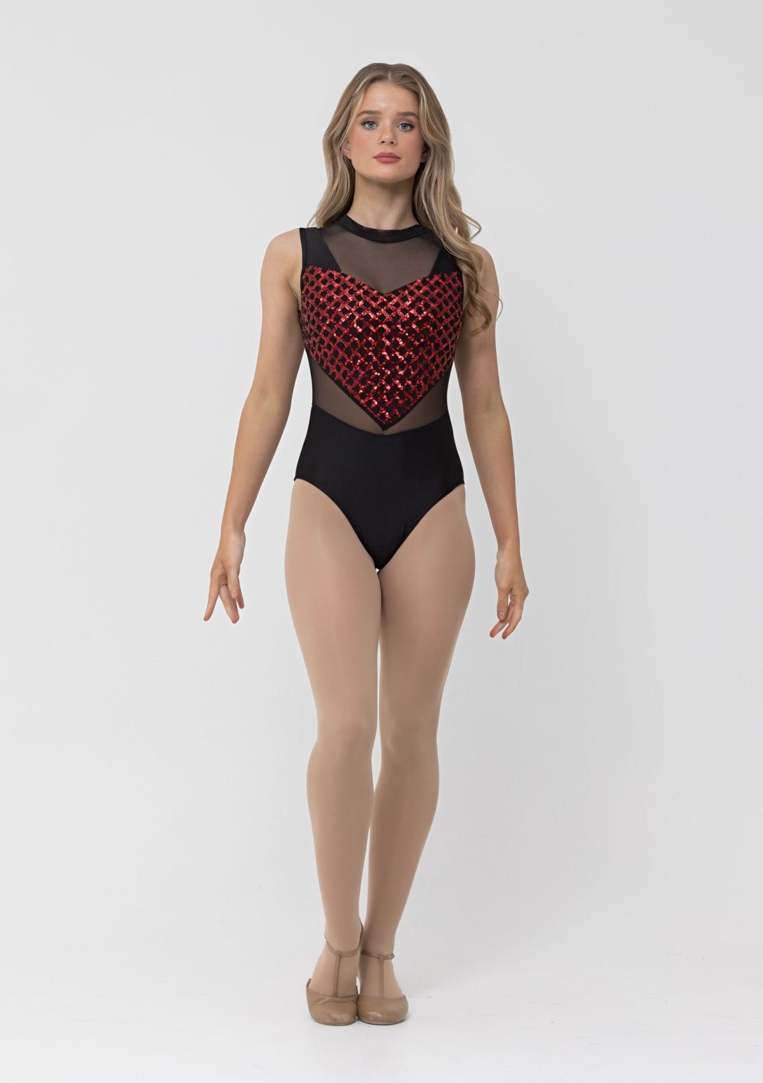 Dazzle on stage, with the stand out sequin feature on the front, and sophisticated black mesh paneling.